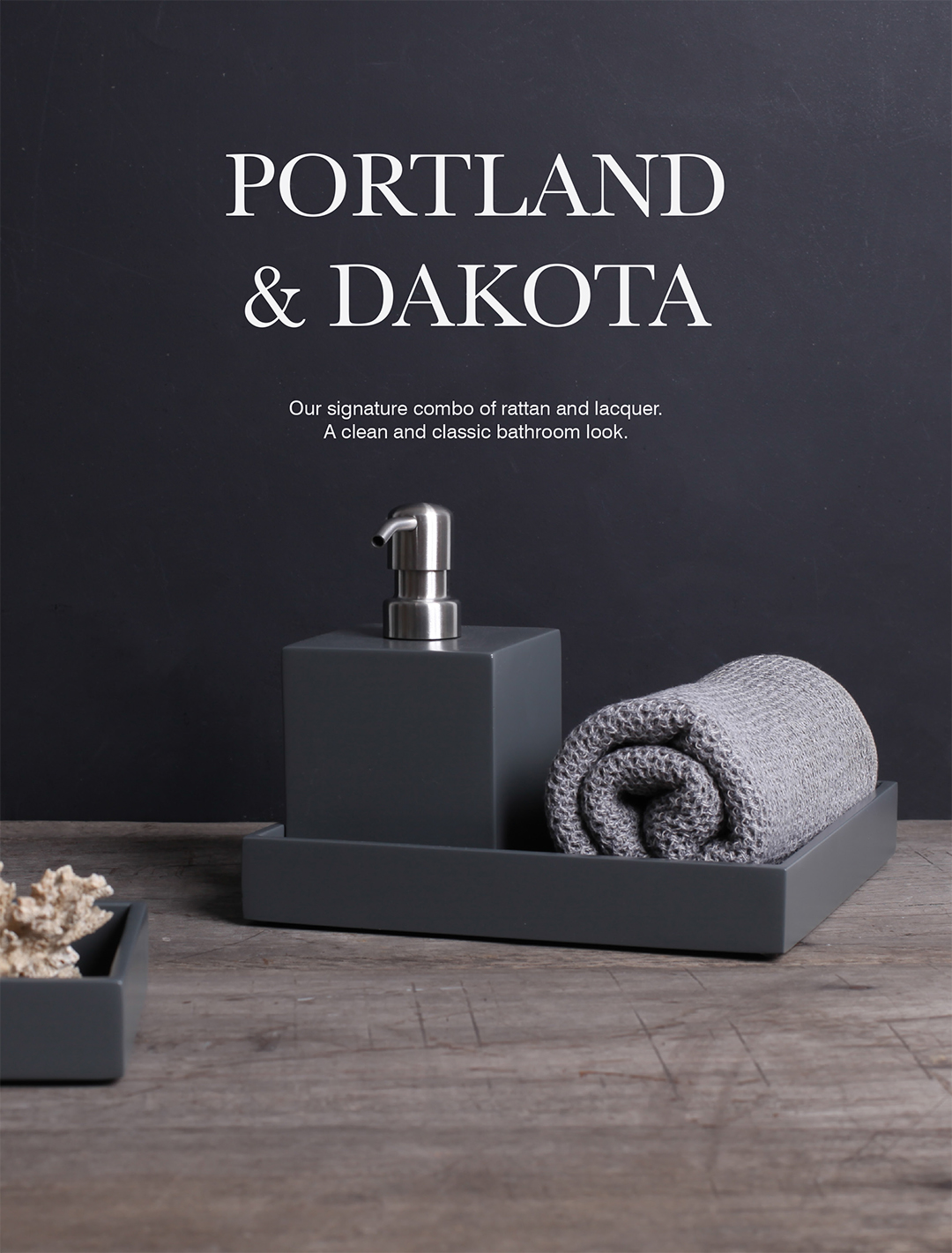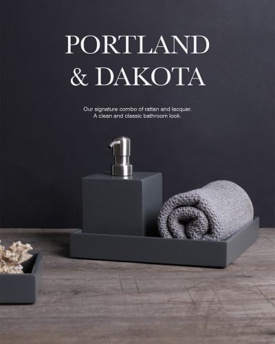 Our signature combo of rattan and lacquer. A clean and classic bathroom look.