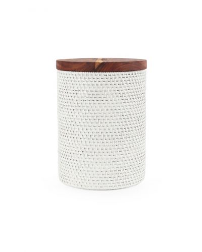 Rattan Waste Basket with wood lid H 32 x D 24 cm