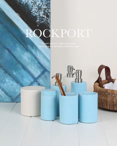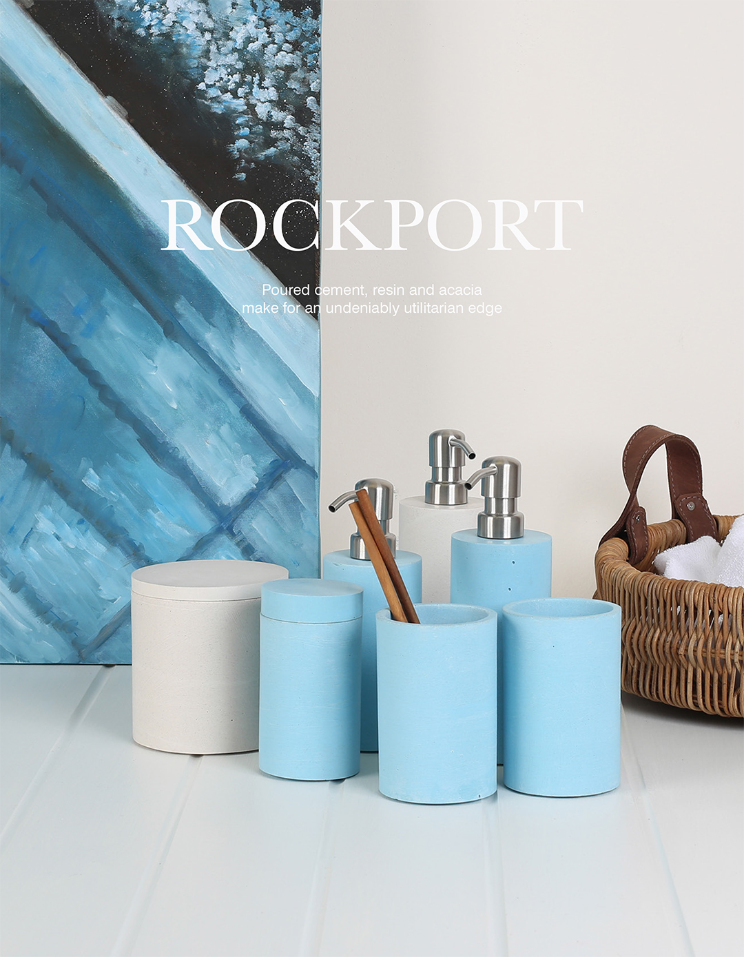 Chất liệu xi măng đổ khuôn, nhựa resin và gỗ keo acacia mang đến vẻ đẹp tối giản kèm theo công năng mạnh mẽ.