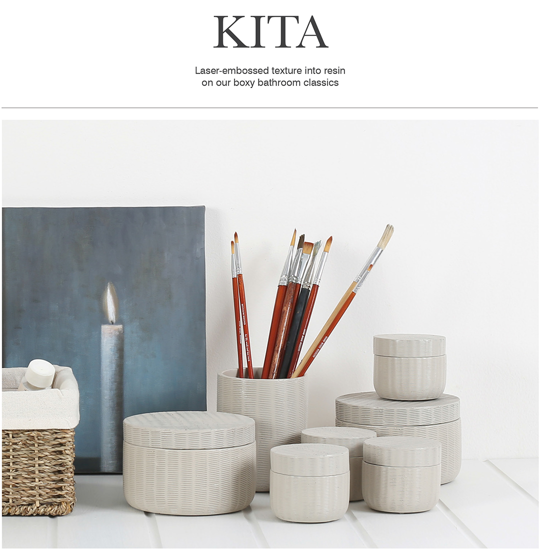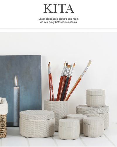 Bộ sưu tập đồ trong phòng tắm của chúng tôi sở hữu những hoa văn được khắc laser trên lớp nhựa hình vuông cổ điển.